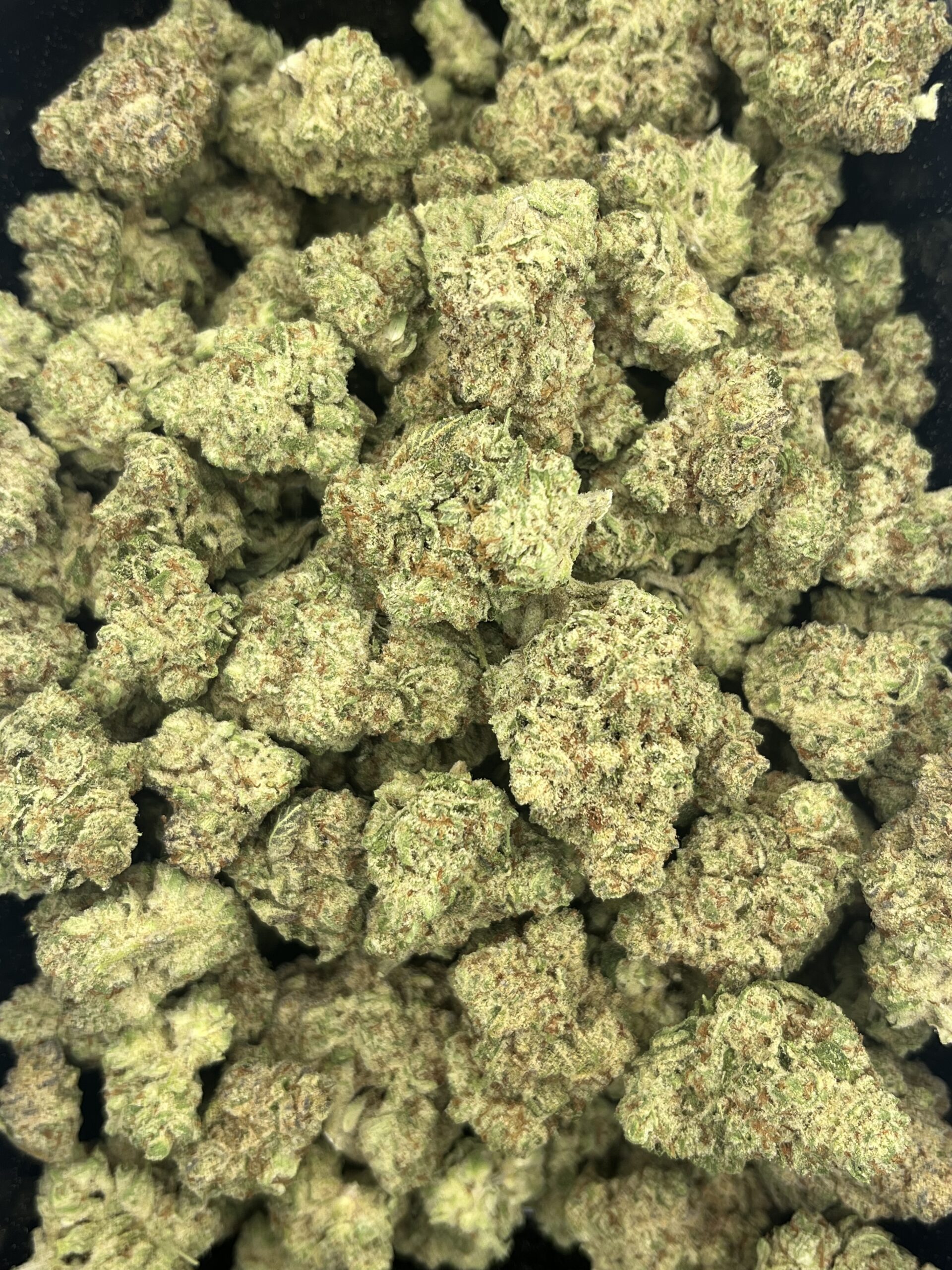 Peanut Butter Breath is a rare evenly balanced hybrid strain (50% indica/50% sativa) created through crossing the classic Dosidos X Mendobreath F2 strains. With this bud, the name says it all – the flavor is nutty and earthy with a rich herbal overtone. The aroma follows the same profile, with an earthy herbal overtone that’s accented by rich nuttiness. As soon as you exhale, the effects of Peanut Butter Breath will sink in, starting with a cerebral lift before spreading throughout the rest of your body in tingly waves of energy. These tingles start in the back of your neck and spine before spreading their buzzing tendrils throughout the entirety of your body, leaving you hopelessly relaxed, kicking back without a care in the world – that is, until the munchies hit. Be sure to have some snacks on hand, since you won’t really be able to get up off the couch to hunt for any at this point. With these long-lasting effects and its high 18-28% average THC level, Peanut Butter Breath is often chosen to treat conditions such as appetite loss or nausea, depression, chronic stress, or chronic pain. This bud has long grape-shaped olive green nugs with bright red-orange hairs and a coating of thick frosty white purple-tinted crystal trichomes.